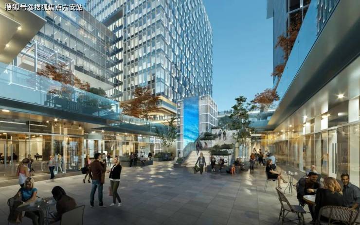 空间场景的复合化则是另一效率引擎,也是卓越办公空间的独特之处。约7000㎡中央商业广场与三大“社交盒子”打破了传统写字楼的孤岛效应,咖啡厅、共享会议室与动态水景交织成“工作-社交-休闲”的无缝场域。