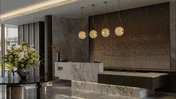 以“与万象,共鉴未来”为主题的写字楼大堂繁华盛启。作为杭珹未来中心写字楼实景首发,独具创新的美感设计与空间格局,不仅匹配杭州城市新中心的科创气质,更彰显国际总部商务的尊贵感与仪式感。