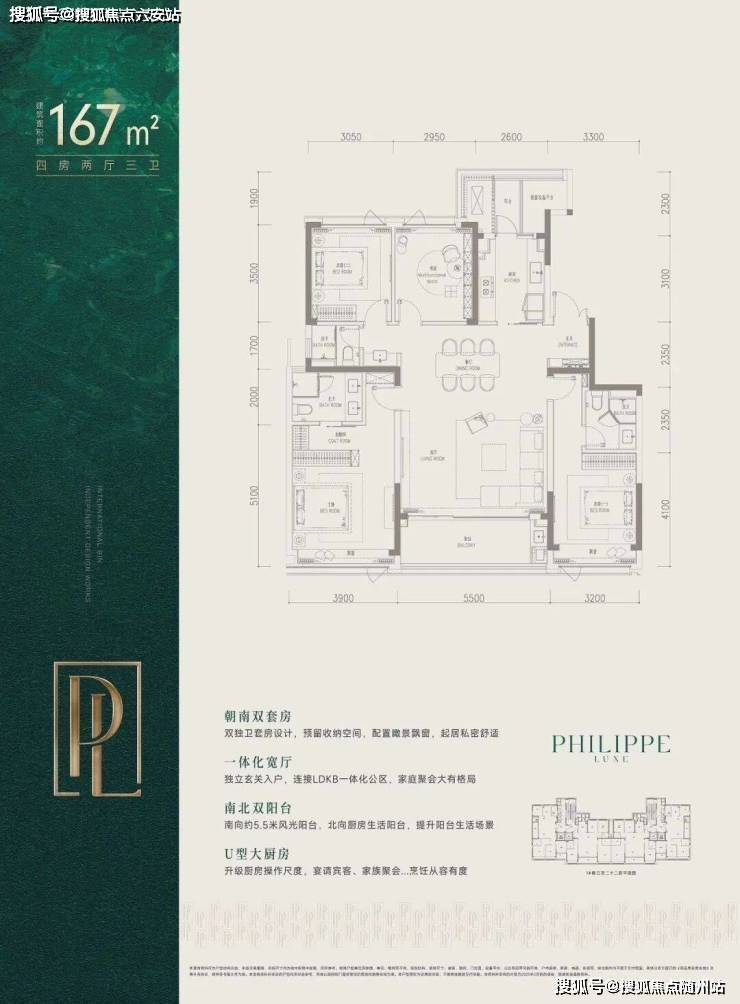 而建面约167㎡则是四房三卫格局,双套房设计,约40㎡的剧院式横厅,客餐一体,气场全开。市北、滨江的不少改善家庭,都在等它上线。