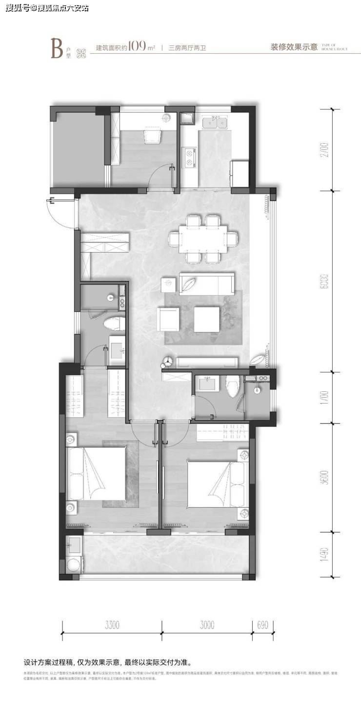 - **约99㎡三房两卫**:三开间朝南+6.6米双联阳台,主卧套房配备飘窗与全明卫浴,颠覆奥体入门门槛,首付仅需34万。