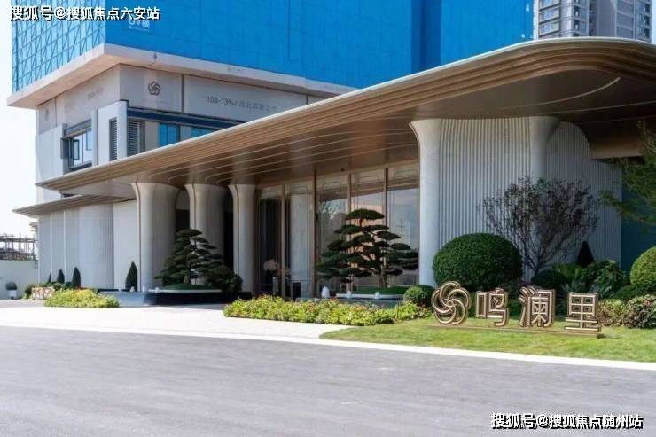门前两棵罗汉松;园区内的中央园林围绕新型蓝宝石戏水池打造,营造澜韵迎宾、松鸣涧语、鸣泉叠韵、鸣芳拾趣、鸣香径幽等九境空间。