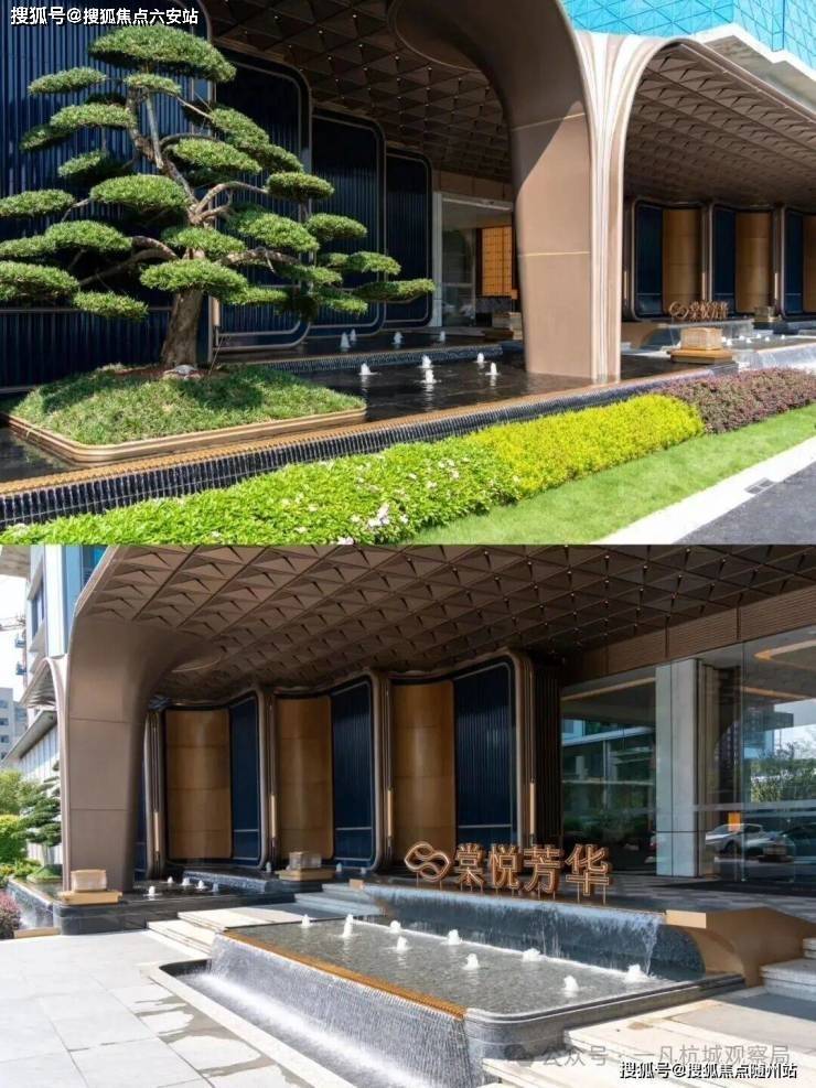 中央水景实图:景观灵感源自著名珠宝品牌CHAUMET,以“繁花造型珠宝”为设计理念,将大胆、华丽、创新于景观之中,形成特有的珠宝风格景观设计系统。