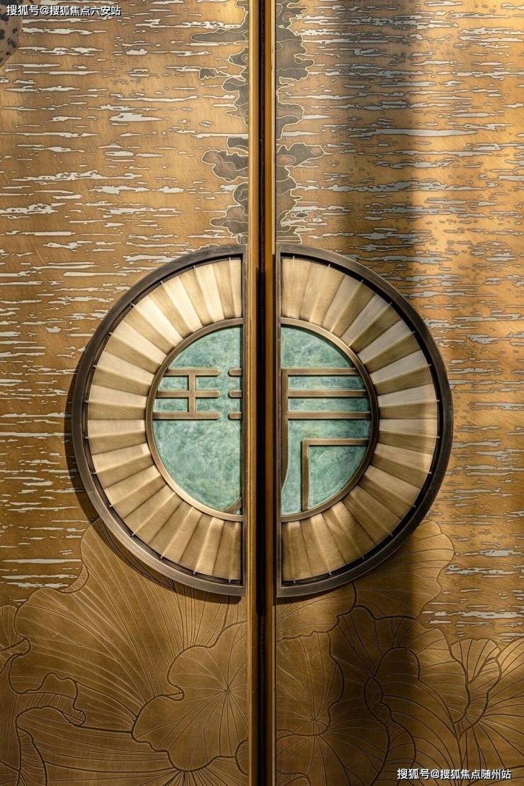 入户铜门由朱炳仁大师团队锻造,室内融入汝窑冰裂纹、江南花窗等元素,赋予空间文化辨识度。