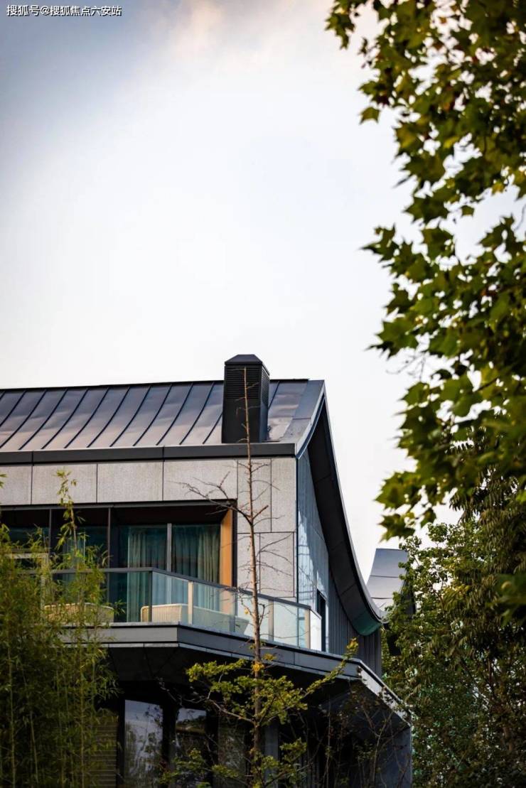 建筑的屋顶采用了非常东方的人字坡顶。通过大面积落地玻璃窗设计,模糊空间的边界感,建筑内部与外部协调融合,在获得充沛光线的同时,视野可以以更大的广 度左右扫视,将更多风景迎入室内来。