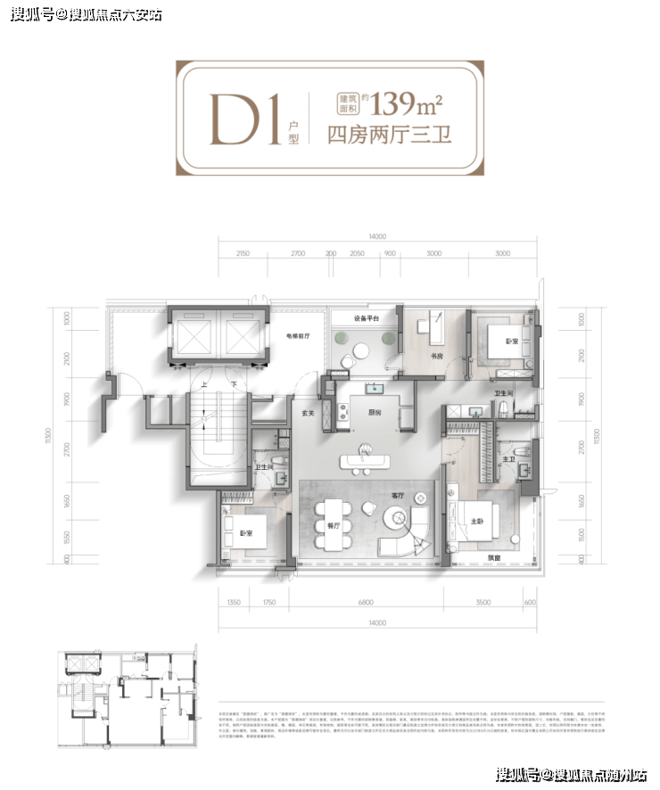 约139方四房三卫户型,作为改善王牌,完美契合高端客群需求。四开间朝南,南向面宽约14m,最大化引入阳光清风;双套房三卫设计,从容应对三代同堂的居住需求;餐客厅一体化连接北向阳台,南北通透,空间开阔感倍增。更值得一提的是,两个户型得房率均高于同区域同类型项目,同样的购房预算,享受进阶的生活品质。