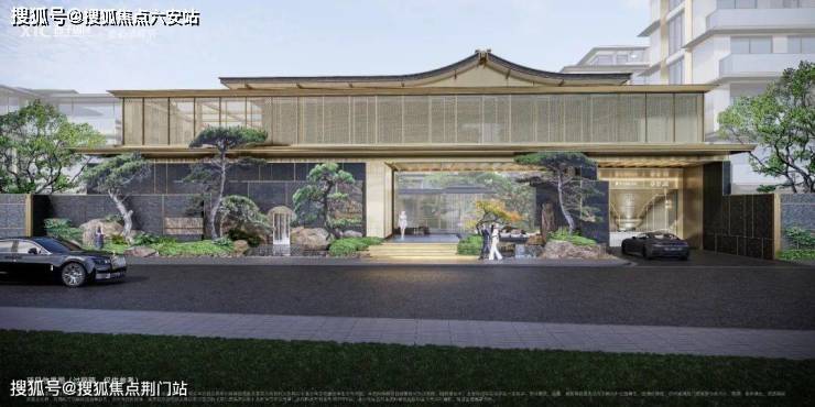 而当你走近,会发现细节中又藏着婉约之美:不同于多数中式项目门前只设一对松树与神兽,湖韵清晖府耗费重金,从全国寻来四株错落有致的造型黑松,辅以错落太行金原石、叠瀑与巴西铂金钻奢石影壁——连景墙内侧肉眼不可见处,都用上了铂金钻奢石,只为在门前打造一座精致的“松石之园”,将来业主可体验“未归家,先入画”。