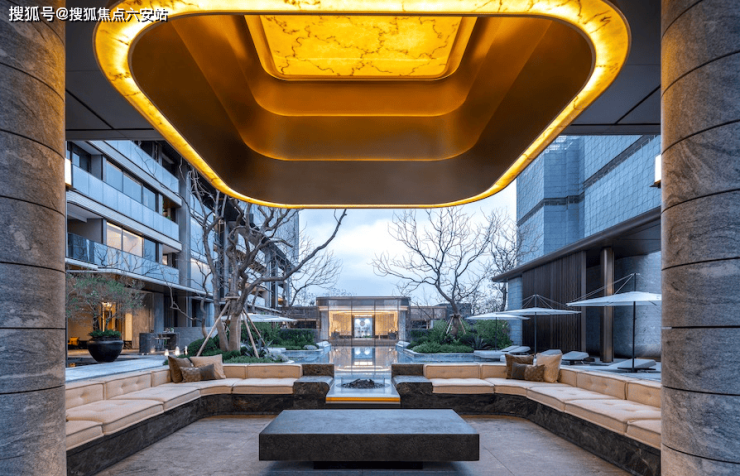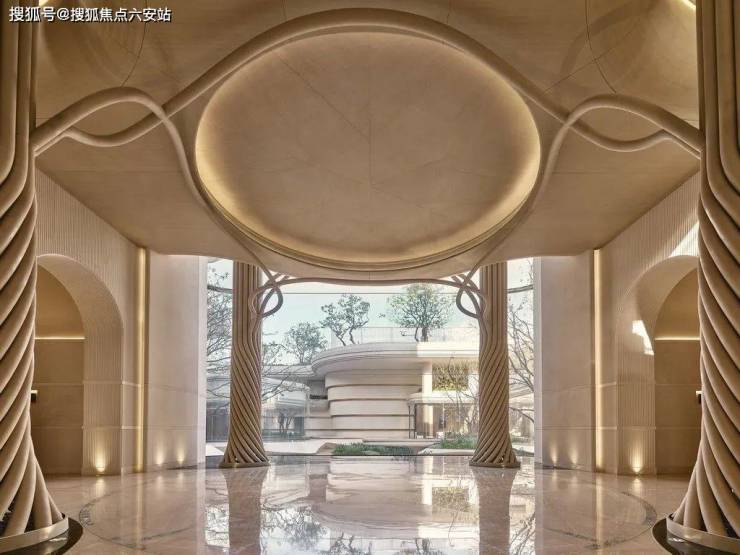 【生辉之金】:香槟金金属流线、手工密拼弧形金属板,外立面石材铝板采用干挂工艺,流动恒久的华贵。