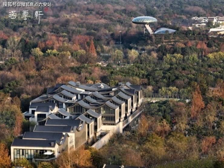 涵雲軒的建筑,吸收江南院落的坡屋顶、山水景墙等中式风骨,同时金属屋面、大面积玻璃幕墙与美国白金石的创新加入,让整个建筑群多了几分国际感。