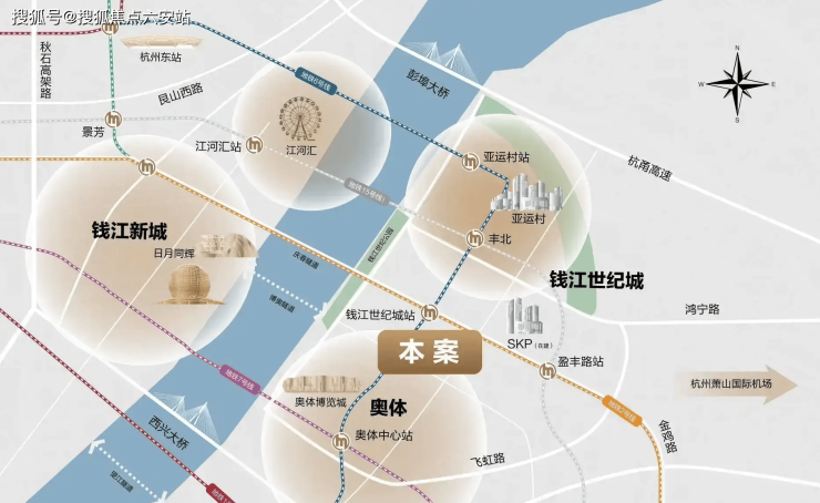 萧山傲世邸排屋拥有无可比拟的交通优势,实现 “双地铁 + 三桥三隧道 + 主干道” 的立体交通网络。项目距离地铁 2 号线与 6 号线换乘站钱江世纪城站仅300 米,步行约4 分钟直达,4 站至钱江新城,6 站至杭州东站,12 站至萧山国际机场,轻松畅达全城。地铁 6 号线盈丰路站也在600 米范围内,未来可直达奥体中心、未来科技城。主干道方面,东临奔竞大道(奥体核心区景观大道),西接民和路,北连钱江世纪城公园,南靠盈丰路,自驾出行便捷高效。通过庆春路隧道、博奥隧道、望江隧道,以及钱江三桥、四桥、九堡大桥,10 分钟内即可直达钱江新城核心区,实现与杭州主城区的无缝衔接。