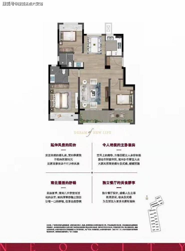 三开间朝南、主卧套房、特别是“联通式阳台”的设计,为业主的生活带来了更多的雅趣。