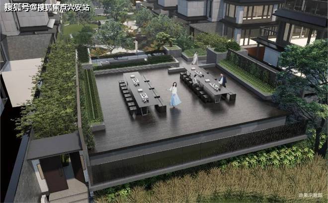 利用高差设置观景平台,为业主提供停留、休憩、赏景的场域,近可俯瞰园区内曼妙风景,稍远处可眺望运河风光。也可在此品茶、听音乐,如同再现宋徽宗赵佶《画唐十八学士图》的优雅场景。