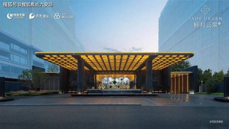 翠意流金的超50米宽、净高约6.45米的敞阔门庭,矗立一面艺术雕塑,在晚风中闪着荧荧微光,昭示着家的方向;沿着酒店式落客归来,中央迎宾水景、静水微澜与跌水如瀑交汇,塑造层层叠翠归家仪式,随之步入高奢酒店级大堂,铺展生活的序章。