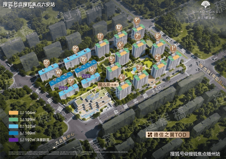 滨江·潮颂府总建筑面积约13.82万㎡,整体容积率仅2.0,规划了17栋7-13层的低密建筑,总计720套高品质住宅。项目主打建筑面积约104㎡-197㎡的洋房与小高层产品,涵盖三房到五房户型,满足不同家庭结构的全周期成长需求。