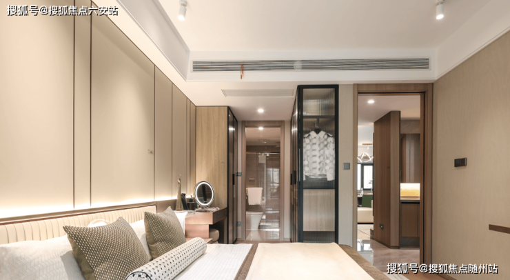 一方不被打扰的主卧空间,以独立套房格局,关照精致、私密的生活品位。这里可以轻松放置两排走入式衣柜,四季衣物有序陈列,太太的裙装、大衣,先生西装、领带,都能妥善安放;还可打造独立化妆台+MINI吧,洗漱梳妆、午后小憩,夜晚观影,奢享自在、舒适的美好时光。