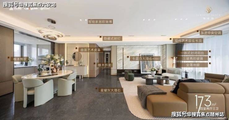 内部装标配置更让你眼前一亮:餐客厅地面和电视背景墙为大理石交付,更有甚者,室内总共用到5款石材,墙面用尼斯木饰面取代以往的墙纸;厨房空调+博世六件套(含双台冰箱),东芝的中央空调,唯宝台盆、汉斯格雅五金、松下智能马桶、智能家居欧瑞博.....很多配置在云城,尚属首次!