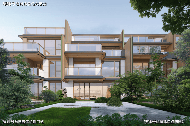 无论是叠墅还是排屋合院,每一层都做了往外延伸的挑檐,而且还是坡屋顶的形制,东方建筑的神韵一下子就被渲染了出来。