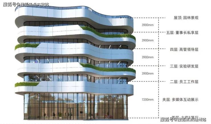 垂直分层定制系统:首层7.2米挑高+1吨荷载适配重型实验室/智能产线;2-5层4.5米层高支持灵活隔断,董事长层独占270°江景视野。