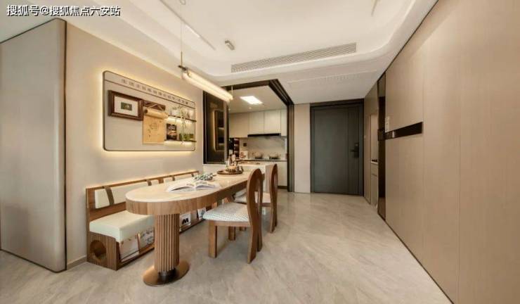 比如建面约97㎡户型,U型大厨房加上特殊设计的“S墙”,省去冰箱空间的同时,让整个户型更加通透美观。