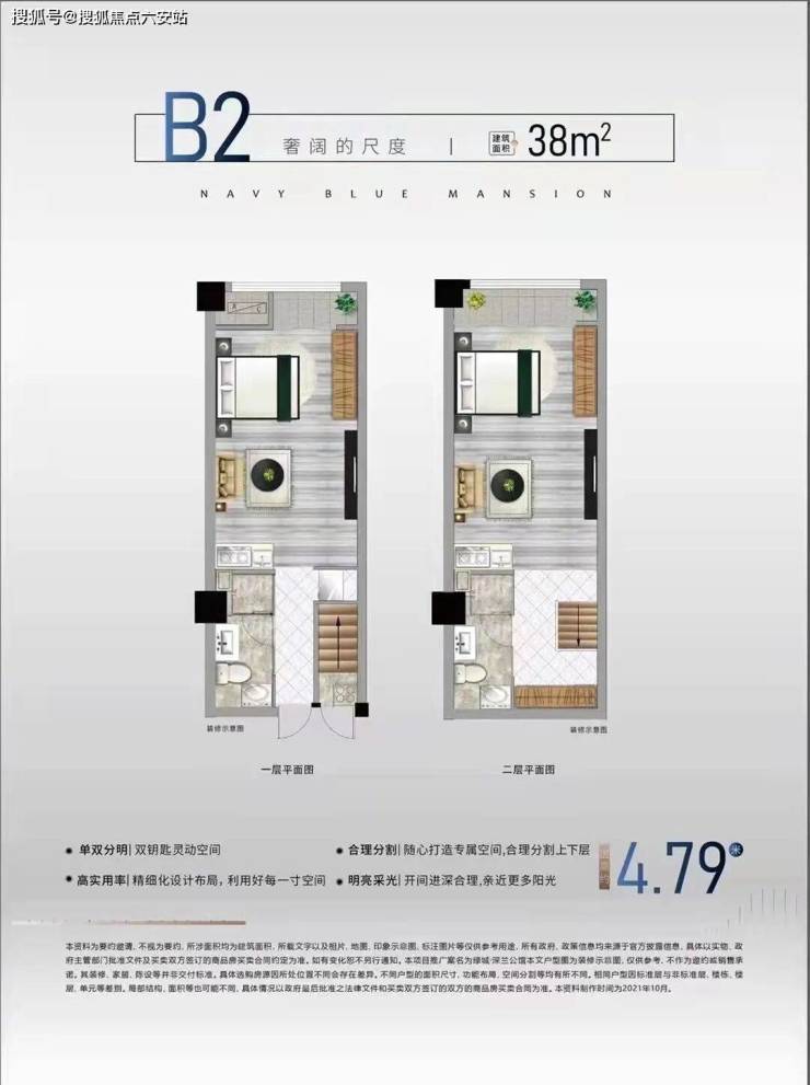 深兰公馆的产品设计极具创新性,主打“双钥匙LOFT”户型,建筑面积约33-50㎡,层高4.75-4.79米,采用独立双入户设计,实现“买一层享两层”的高空间利用率。