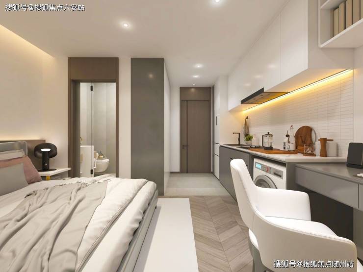 项目主打22-45平方米的精装公寓,平层层高3.25米,采用独门独卫设计。小面积段不仅降低总价门槛,还可灵活用于自住、办公或创业,实现“三宜使用”(宜住、宜商、宜租)。