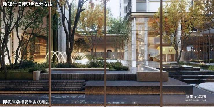 再看约1200方下沉庭院,叠水成瀑,区别于市面上大部分楼盘的“坑洞感”,形成上下两个平行空间的双层滨水度假系统,一看就很赞。
