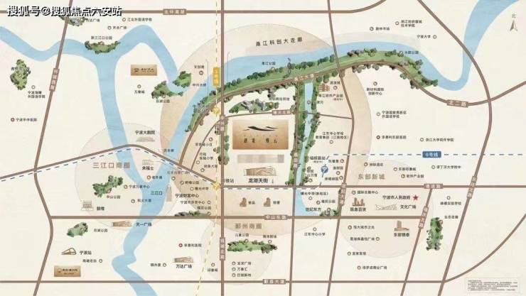 休闲:项目北侧邻近甬江公园,为居民提供休闲散步的好去处。