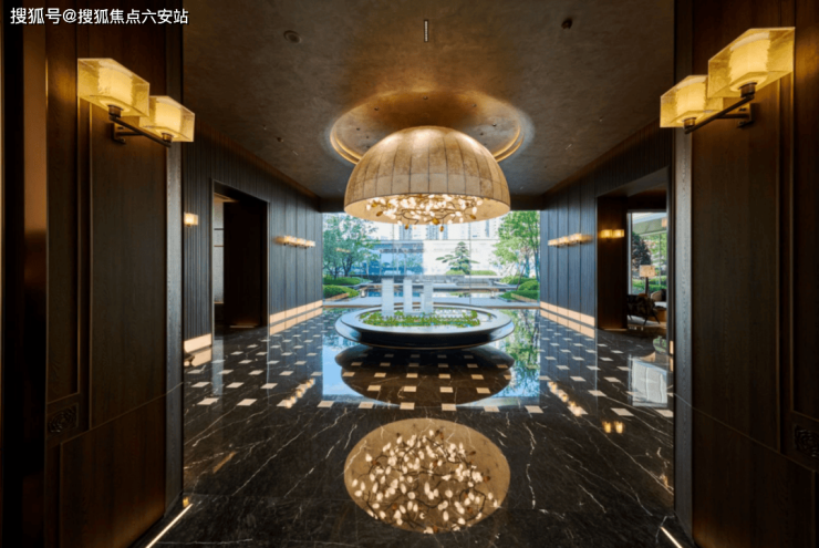 豪华酒店式门头,是整整用了一年时间才打磨出来的。香槟金吊顶,镌刻精致龙鳞祥云纹,细节处彰显高贵;通透质感的玻璃屏风与景观水系,两侧沿中轴展开,极致恢弘。