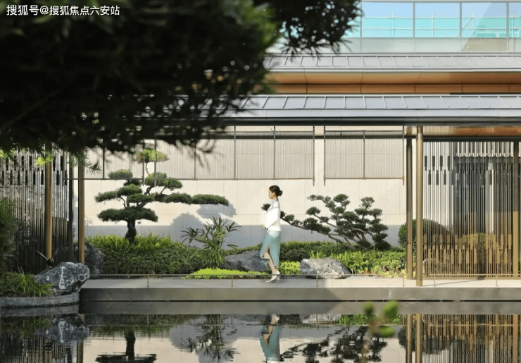 你看,坡顶飞檐、阶梯入门、青松绿植、格栅围墙……高门大户般的门头,流转着东方气韵,再现风雅之境。