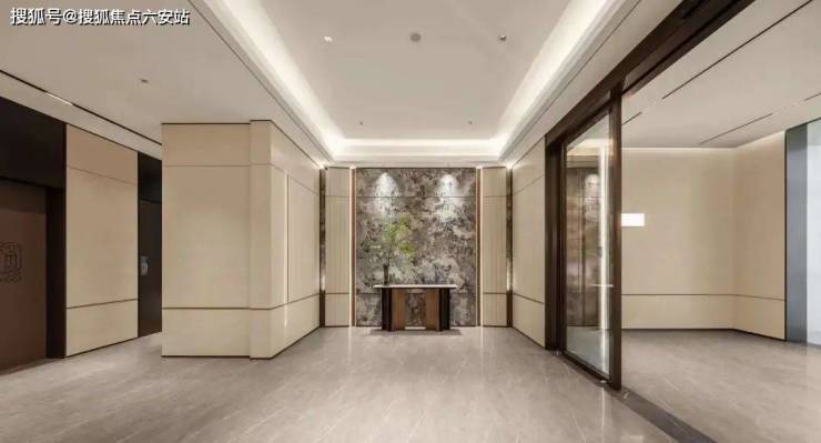 最令人心旷神怡的,是最后一进景观——约400㎡的景观戏水池,绿植环绕四周,有如热带雨林。玩完水在这里一躺,比置身海岛度假酒店更松弛酣畅。金色飘檐擦亮辨识度,南立面以大面玻璃主打,白、金、蓝灰为主调,配合部分涂料;基部用上了贝金米黄大理石,温润如月光。