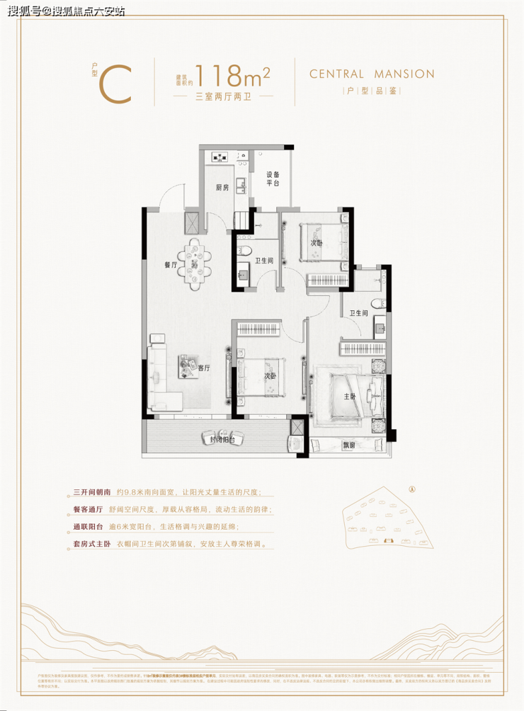 户型方正,三开间朝南,餐客通厅、套房式主卧,逾6米宽通联阳台,延绵生活志趣。