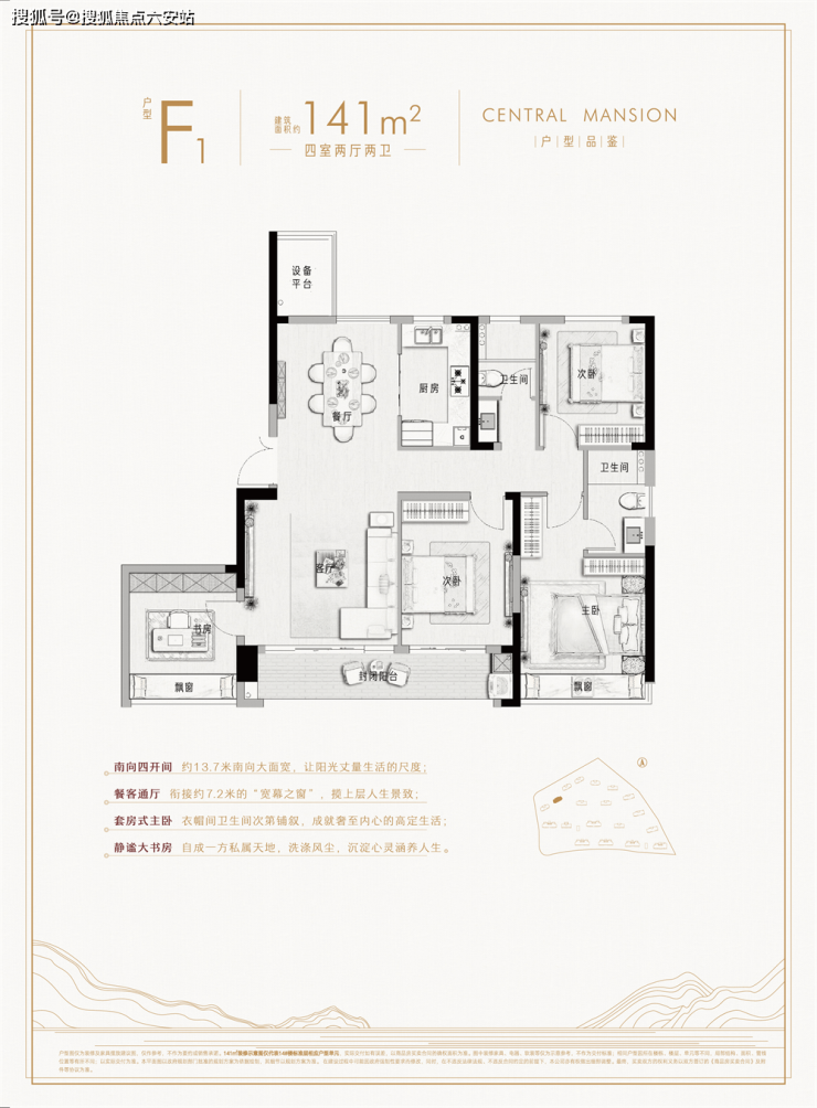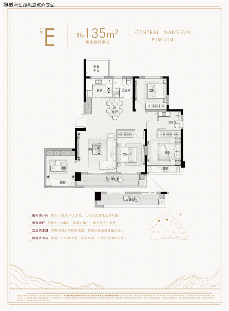 户型方正,四开间朝南,套房式主卧、静谧大书房,让您的生活大不同。