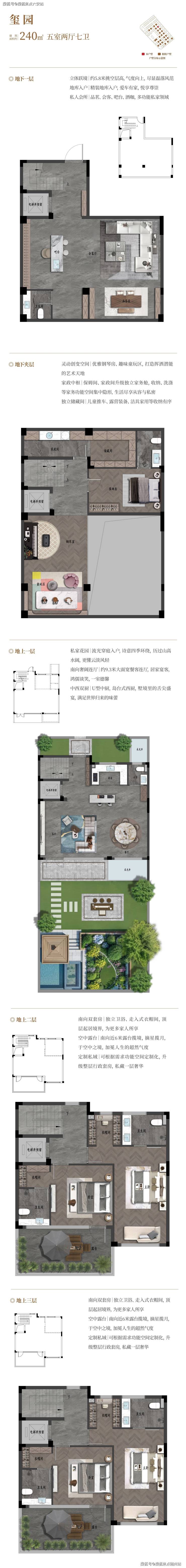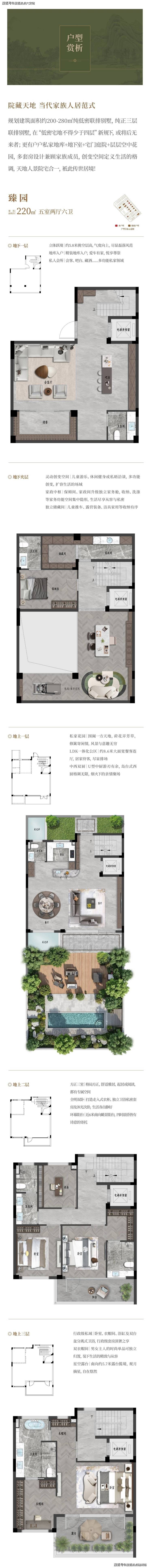 5. 产品形态唯一:集“独门独院、私家地库、多层花园、多套房”于一体的纯三层院墅,市场难觅同类。