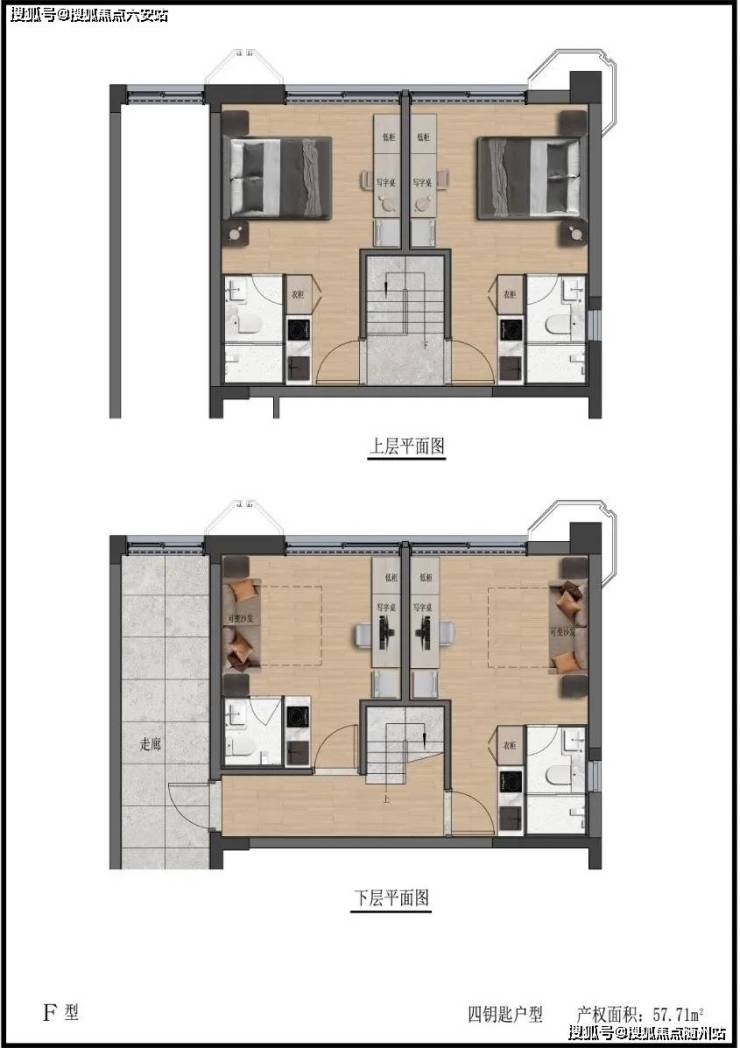 项目产品设计以4.79米双门双钥匙为核心特色,并延申至双钥匙、四钥匙户型,面积范围22~58m²,提供高度灵活的居住解决方案。双钥匙设计指同一单元可分设独立入口,实现分区使用,如自住部分与出租部分相互隔离,提升隐私性和实用性。