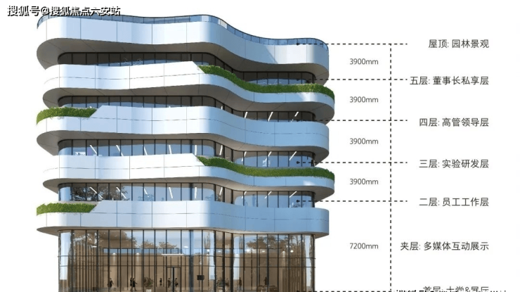 携手国际设计团队,以“云端生态”为灵感,外立面采用流线型玻璃幕墙+香槟金铝板,打造建面约2000-2550㎡独栋办公空间。首层7.2米挑高展厅、270°环形采光布局、螺旋上升空中花园,获“包豪斯金奖”“美国建筑大师奖”等国际殊荣,企业形象对标世界500强。
