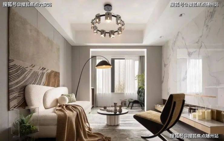每个进入建面约114㎡户型的人,总是被它约6.3×4.5米的客厅+开放书房空间所震撼,面积约38㎡的公区,做出约160㎡以上大宅才有尺度感;