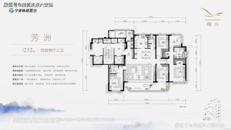 建面约232㎡滨水东首:270°环幕视野,18.6米南向开间,赠送60㎡私属露台,层高3.3米,私享东钱湖全景。