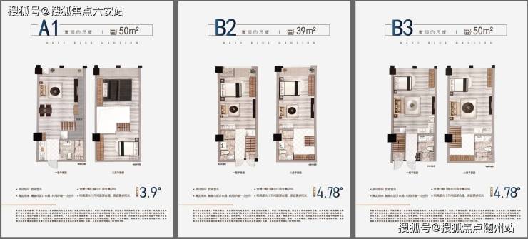 深兰公馆的产品设计极具创新性,主打“双钥匙LOFT”户型,建筑面积约33-50㎡,层高4.75-4.79米,采用独立双入户设计,实现“买一层享两层”的高空间利用率。