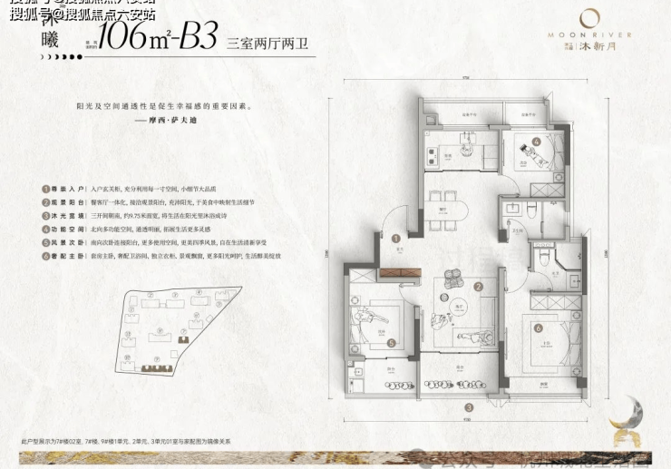 建面约106㎡B3户型,创意样板间效果展示,并非实际交付标准,具体交付标准以双方买卖合同约定为准。