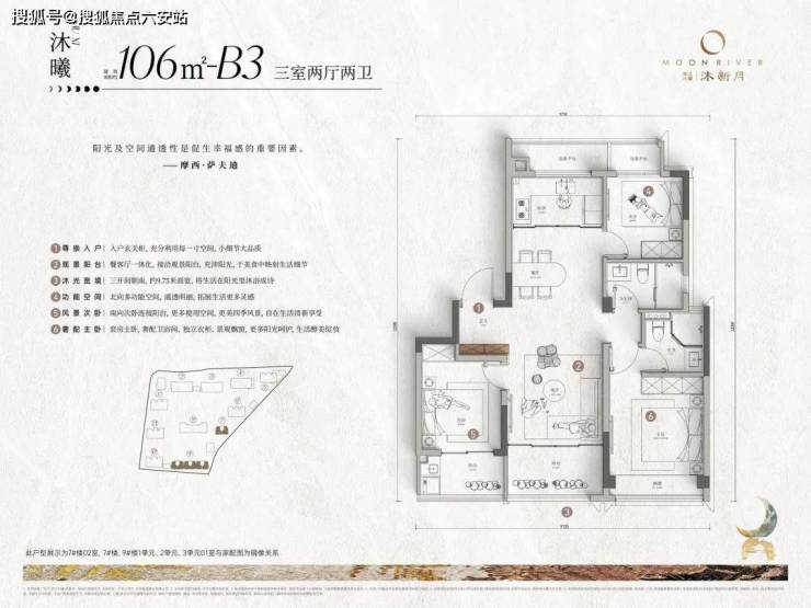 约106㎡全能三房——全明户型、三开间朝南、阔尺采光面宽,搭配玄关收纳系统、U型厨房等贴心设计,兼顾功能性与舒适度,为年轻家庭定制「一步到位」的理想空间。