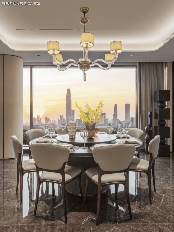 与此同时,大尺寸玻璃+超高窗墙比,消融建筑的边际感,配以金属铝板及铝型材装饰,增强建筑视觉层次感。整体铝板与玻璃幕墙形成虚实对比,增强了视觉冲击力和艺术表现力。这样就兑现了一座有温度的建筑,让业主一眼就有回家的感觉。