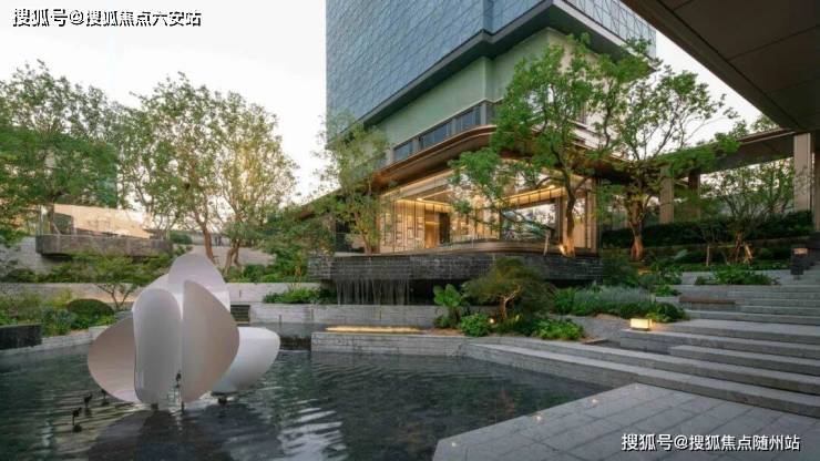 当建筑不再局限于平地,而是顺着台地生长,生活便有了“漂浮”的诗意:山水勾勒如立体剧场,台地步道蜿蜒铺展,“步步向福,阶阶升吉”的寓意藏于其间,转角处,同样出自施海老师之手的《恋紫》雕塑,上下呼应,以流动金属线条,勾勒花瓣舞动之姿。