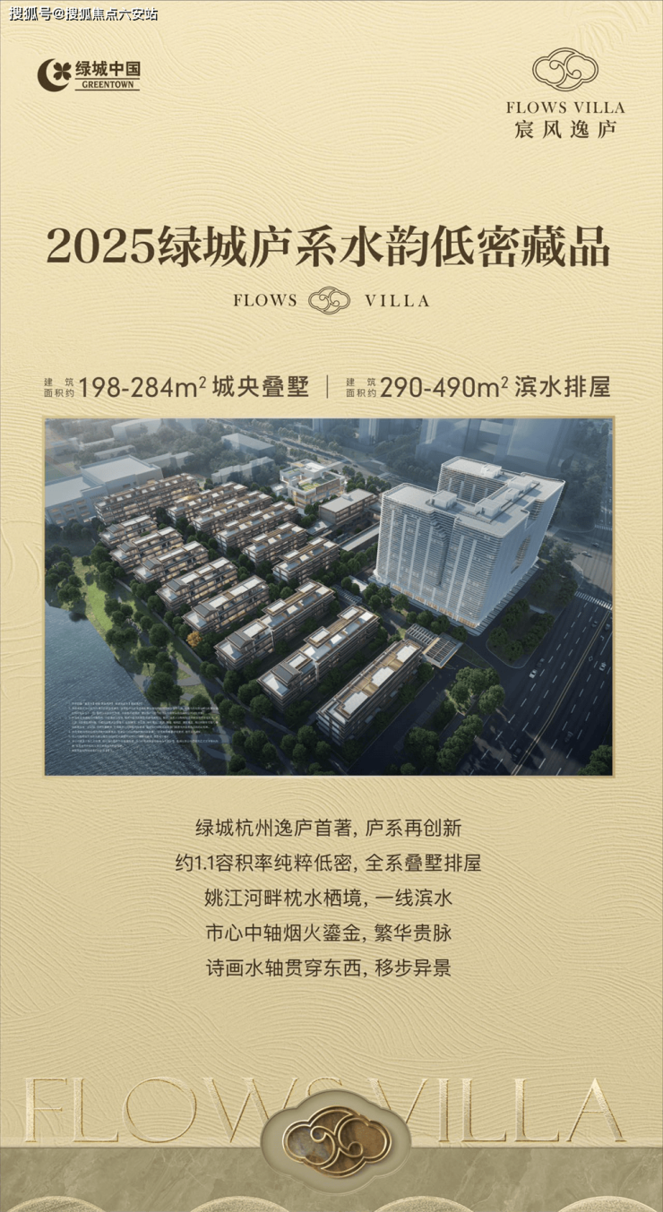 绿城宸风逸庐|萧山城芯地铁旁 容积率1.1 姚江河畔 198-490㎡叠墅排屋享银泰万象汇配套
