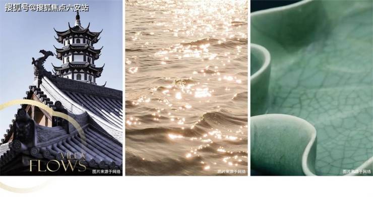 融入门庭引水、庭院围水、悬玉生水、重檐聚水等意境,并将月、潮、影等东方美学意象,进行当代转译,重溯东方屋檐建筑之美;提取蜀山先照寺重檐叠韵之形,萧山水脉清澜鎏金之色,萧博青瓷玉润流光之质,定制专属于萧山的逸庐之美。