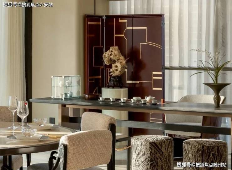 该户型由南北边界空间设计创始人许立强老师设计,共有3个套房+餐客双厅+阳台且带保姆间的设计。该户型样板房斩获了 2022 日本 IDPA 国际先锋设计大奖-金奖 以及2023年美国IDA国际设计大奖—荣誉奖。整体空间秉承传统与当代融合的理念,重新定义城市天际精英私享豪宅,化用国画中的“平圆留重变”的骨法,打造城市格调寓所,使其可景观、可休憩、可聚会、可接待。