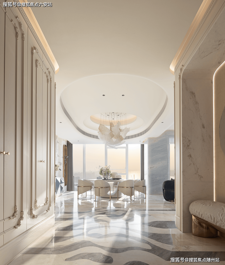 项目设计师在这处空间中,展现出了非凡的创意与匠心。他巧妙地打破了传统空间的束缚,让动线不再受限,居住者可以自由地穿梭于各个区域之间。这种设计不仅让空间显得更加灵动与开阔,更将奢华豪邸应有的华贵气度,毫无保留地融入到了每一个细节之中。
