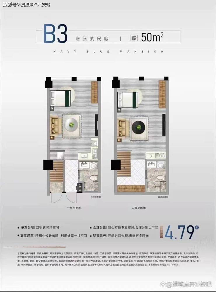在售面积约37-50方,4.79米LOFT精装双钥匙户型,总价35万起!