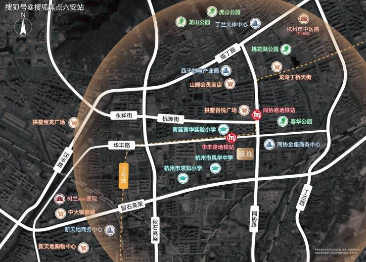 交通资源上,项目以立体生活网络重新定义城市配套的黄金半径。直线距离约300m即为地铁3号线华丰路站G3口,8站直抵武林商圈的能量心脏,同时北侧直线距离约600m还可到达同协路站,触达拱墅吾悦广场的繁华烟火。