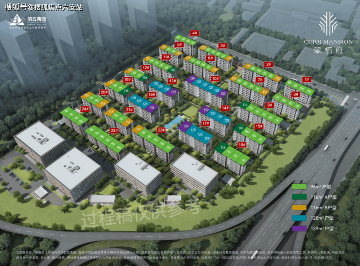 2023年,滨江集团于滨奥枢纽芯落子【滨江•翠栖府】,打造板块内唯一低密纯洋房住区。项目占地约81976㎡,建面约189558.24㎡,容积率低至1.5,规划23幢7F+1幢6F纯洋房,单套建面约97-139㎡,以滨江集团“建造封面人居”的精工标准,匠造高品质滨江洋房样本。