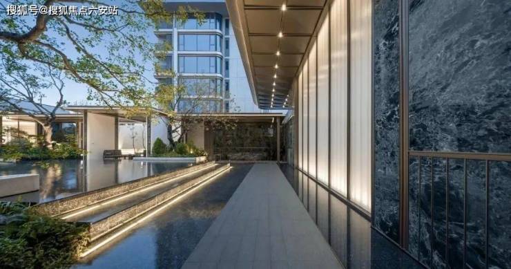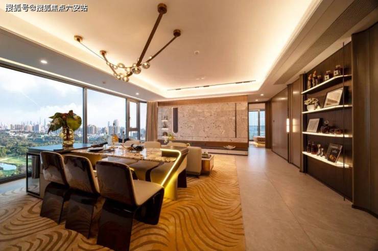 豪宅级立面:金框超流体铝板线条+270°曲面玻璃,由深圳南玻集团定制,光成本投入超千万;