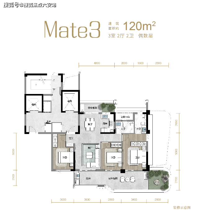 户户享受空中庭院,部分户型空间使用率超100%。
